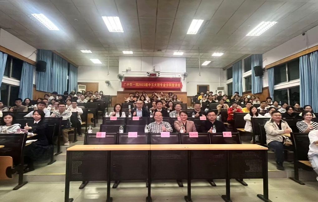 秋意渐浓,学途新启。2025年11月13日晚,第一临床医学院2022级中医学五年制专业分科宣讲会于三元里校区办公楼第一大课室隆重举行。本次会议特邀国医大师周岱翰教授权威坐镇,汇聚各学科方向专家:肿瘤学系曹洋教授、肖志伟副教授、陈尧老师、王文萍老师;妇儿学系郜洁教授、黄艳茜老师;中医经典临床学系刘树林教授;骨伤科学系赵京涛教授;教育教学部龙泳伶部长、周峰副部长、陈小波副主任、谢翠英老师等。众师者齐聚一堂,以深厚学识与临床经验为学子指点迷津,共同开启中医传承与创新的新篇章。