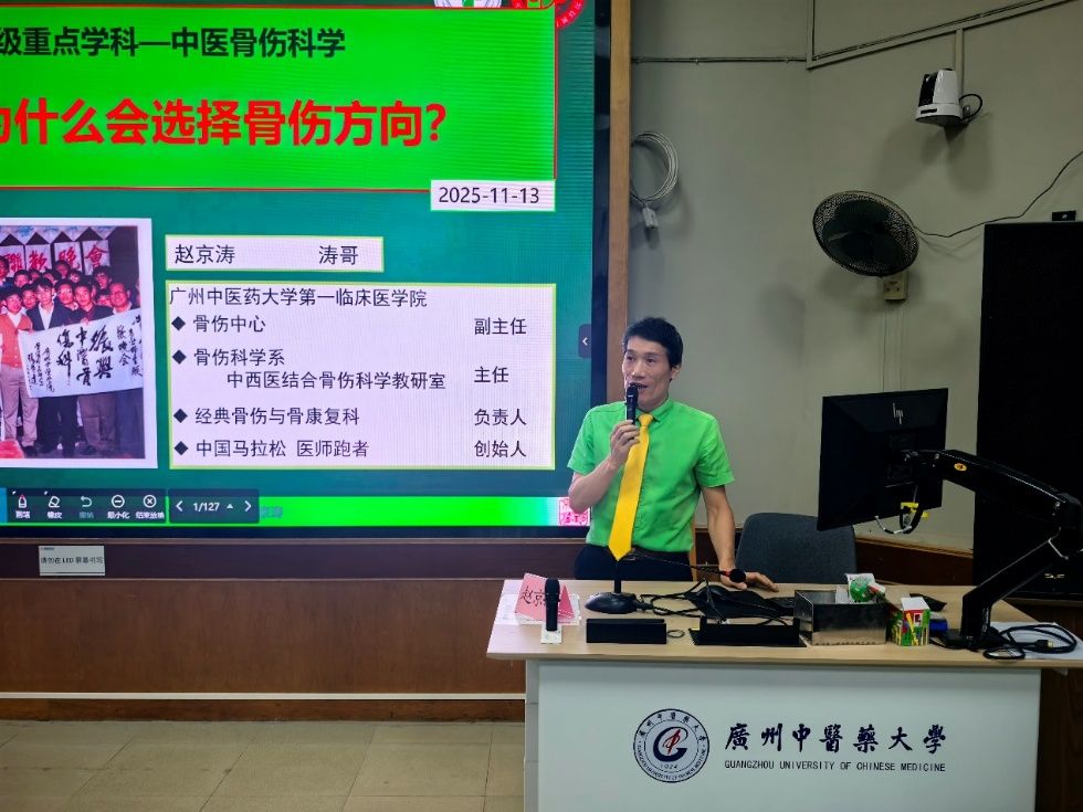 赵京涛教授以运动损伤为例。他指出骨科医生就是帮助喜欢运动的人持续享受运动,保持健康幸福人生,鼓励同学们在持续学习与临床锤炼中不断增值,勇攀医学高峰。