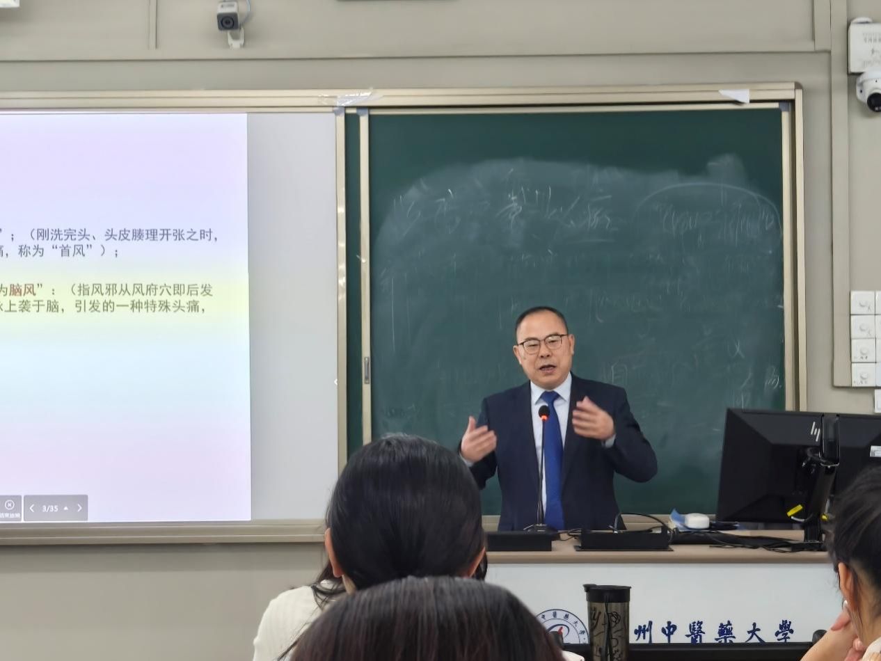 2025年12月5日上午,广州中医药大学第一临床医学院副院长杨忠奇开展 “五个一” 联系班级活动,为 2023 级中医学九年制与精诚班的学子讲授中医内科学 “头痛病篇”。课前暖心交流问需、课上深耕授课传知、课间答疑拓思,全程沉浸式参与班级教学,切实了解长学制学生成长需求,助力人才培养提质增效。