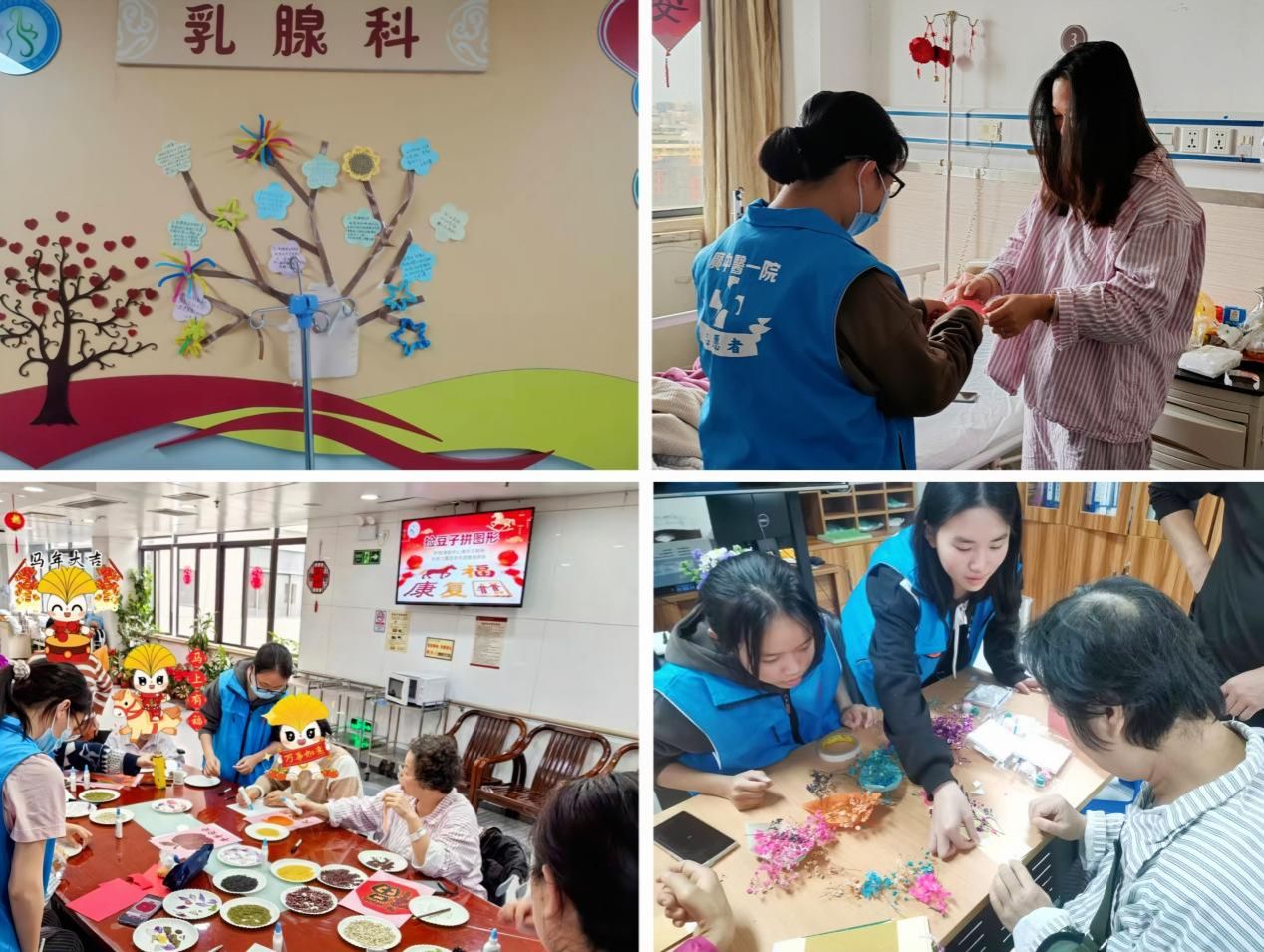 志愿者们为患者制作各式各样的手工(扭扭棒、拼豆、千纸鹤、干花等),为他们单调乏味的生活平添一些乐趣;写贺卡送给患者,祝愿他们早日康复、生活幸福。有患者接过贺卡后连声道谢,说这是住院以来收到的最用心的礼物。志愿者们也在互动中感受到,点滴关怀对患者而言意义非凡。