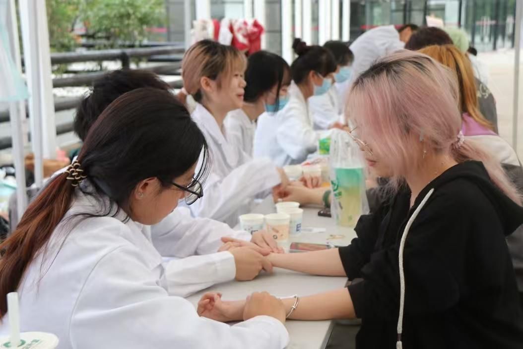 在中医按摩体验区,志愿者们运用中医按摩手法,配合现代肌肉放松理论,为长期伏案创作的同学们缓解肩颈疲劳,讲解日常防护知识。中医体质辨识区则尤为火爆,志愿者们通过中医传统方法,为同学们提供个性化的健康建议,蕴含着传统中医的调理智慧。血压测量区前也排起了长队,志愿者们不仅测量血压,还给了关于如何预防高血压和低血压的建议等。耳穴贴压区更是人气高涨,志愿者们一边操作,一边讲解耳穴与全身各处的关系,许多同学在体验后表示神奇又实用。