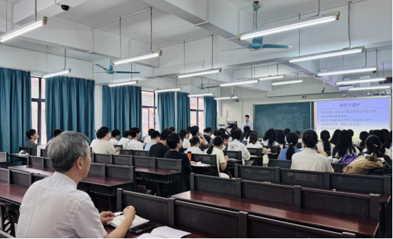 思政课开始前,李俊院长到达课室开展了院领导联系班级“五个一”活动,他深入课堂听课,记录课堂教学内容及师生互动细节,细致观察班级课堂状态与学生学习反馈,课间与任课老师详细交流,了解课程教学设计和教学情况。